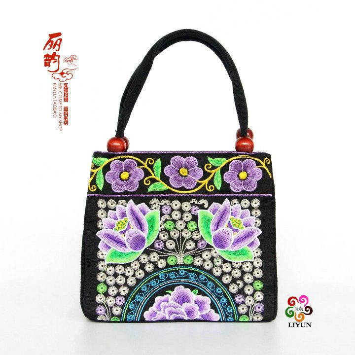 精品民族风包包 双面绣花刺绣帆布小包 女士双层手提包休闲潮流